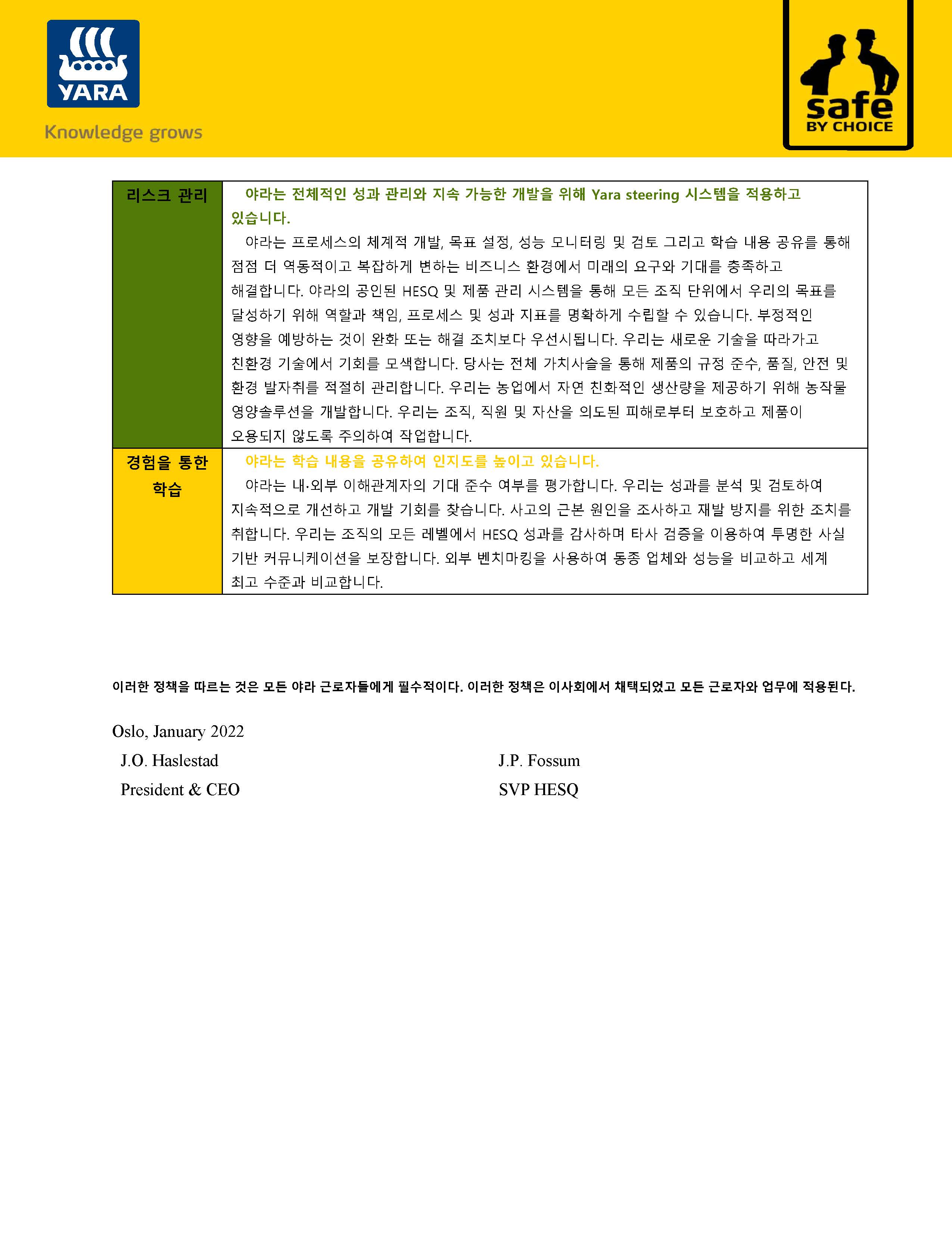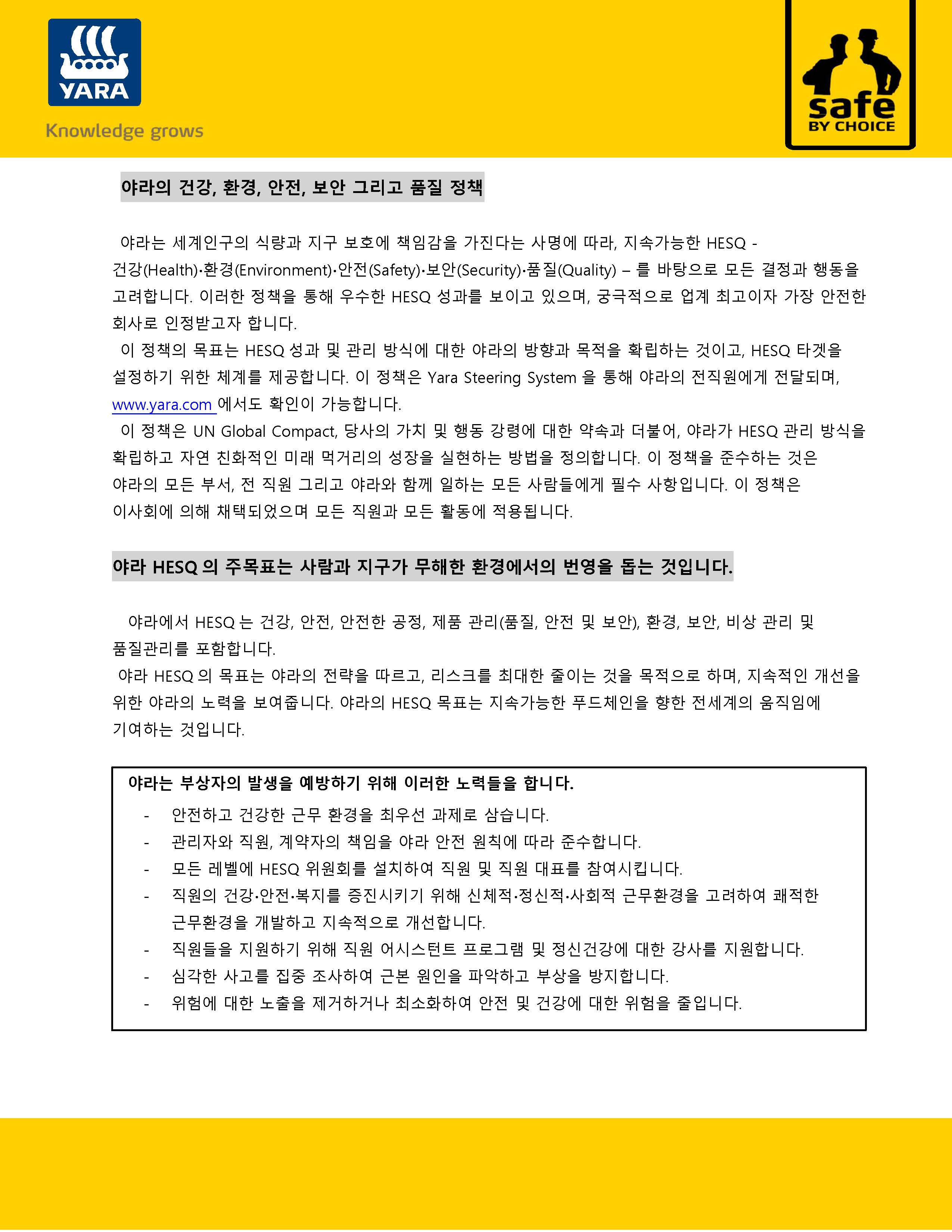 Yara HESQ Policy